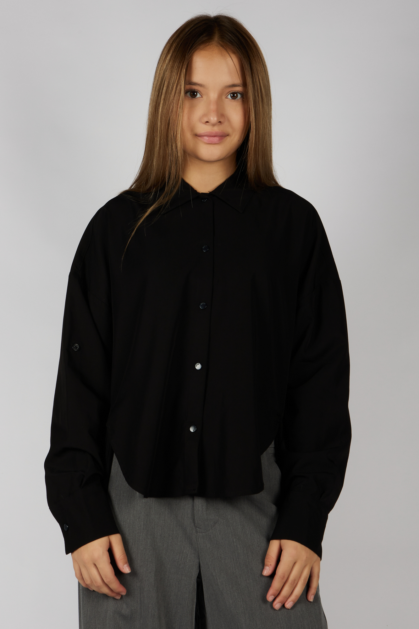 На кнопках. Люксовая-ткань шёлковая с тонкой диагональной структурой. Легко гладить