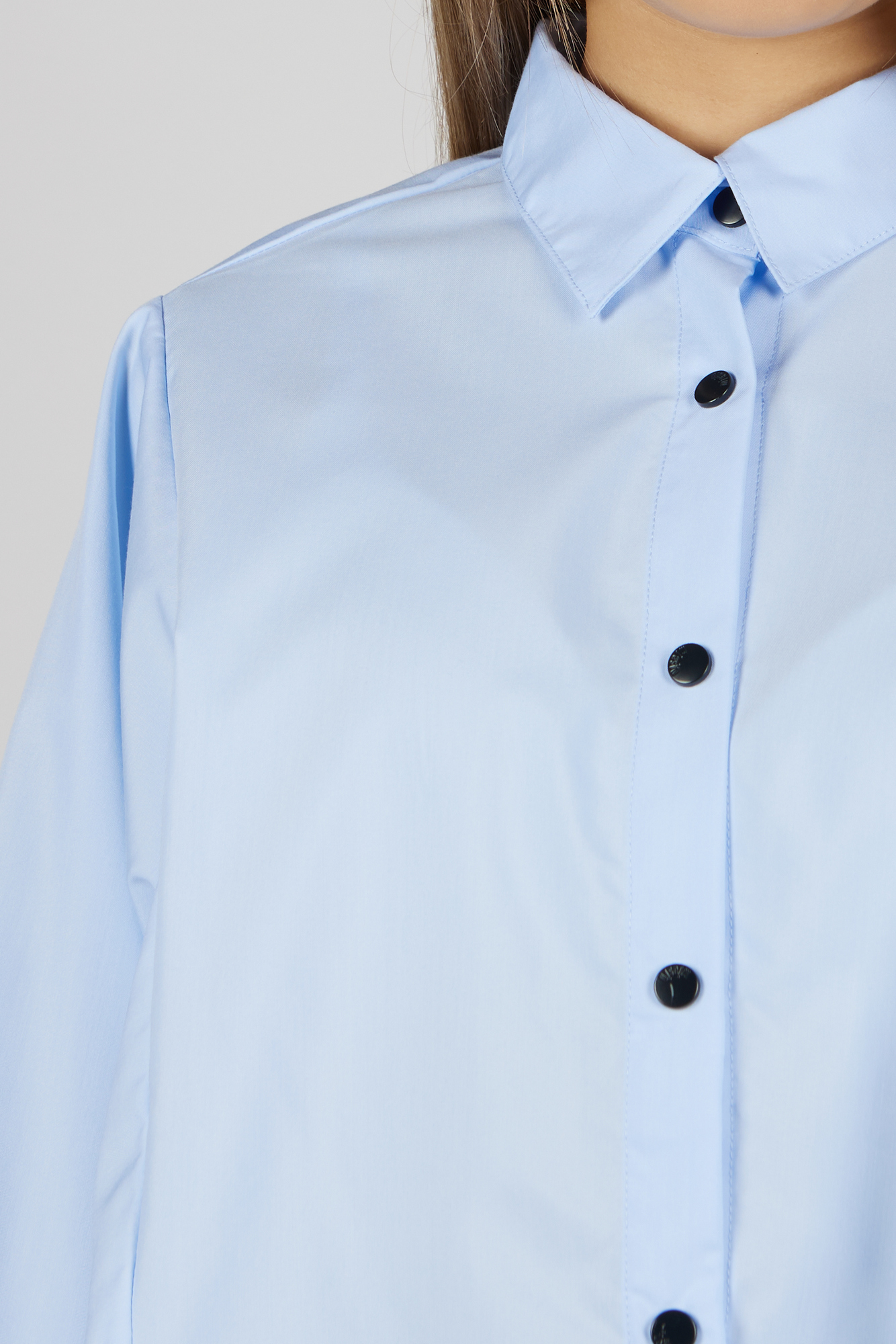 На кнопках. Легкая гладкая ткань. Легко гладить.